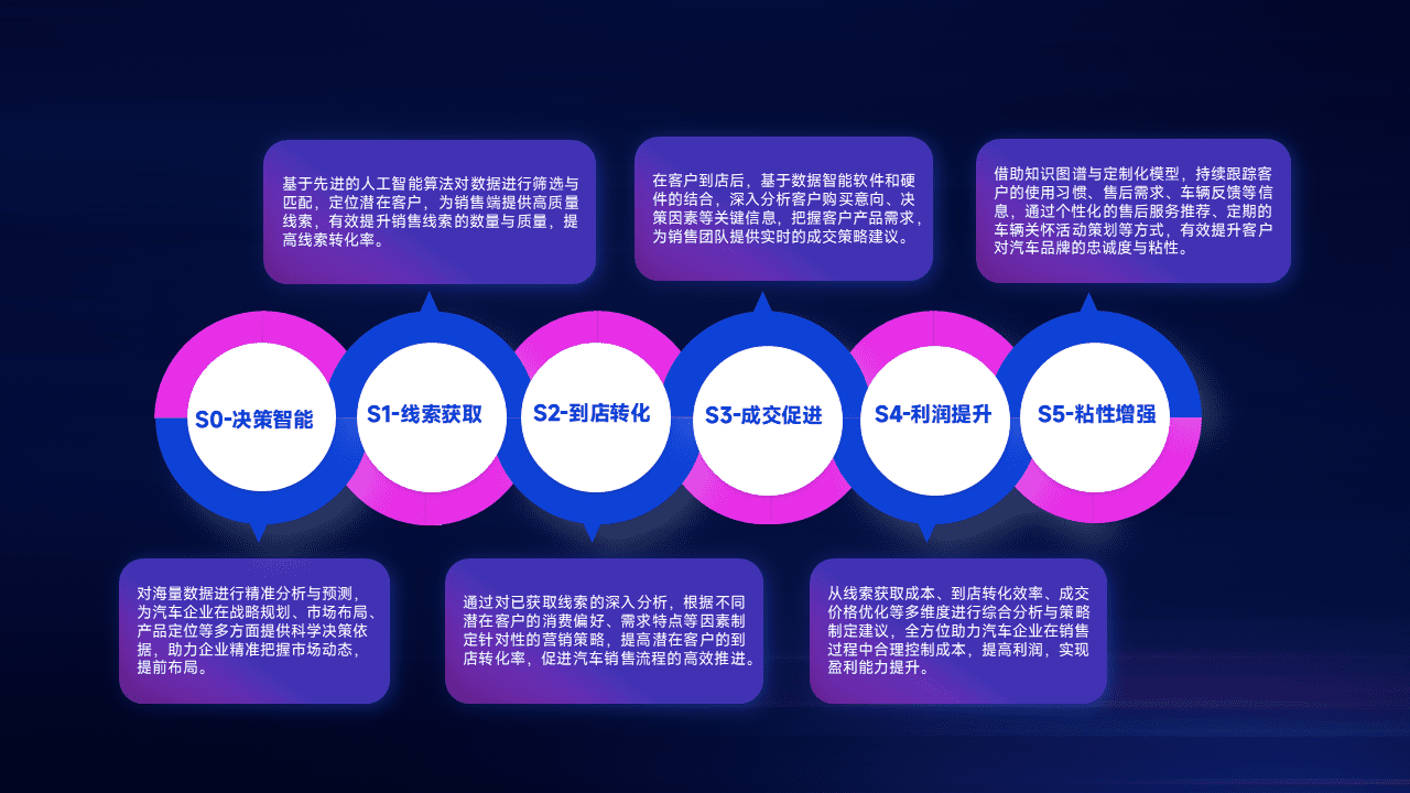 通过拓宽潜在客户来源、、、优化线索分配并提高到店转化率,,以增强销售效率。。。同时,,,利用线索数据不断优化分析模型,,有效提升转化率,,扩大营销影响力。。。。